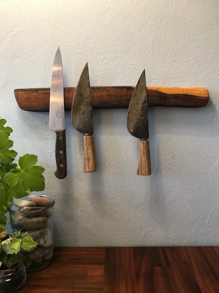 Knivbrætter udføreres i forskellige træsorter og størrelser. Magneterne sidder adskilt og kan hver bære én kniv. Prisen pr. magnet er 100kr. – et knivbræt til fem knive koster således 500kr.